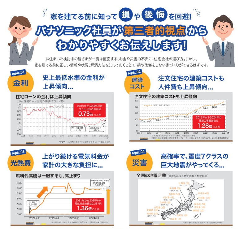 このイベントでは、家を建てる前に知っておくべき重要なポイントを、パナソニックの社員が第三者的視点からわかりやすく解説します。家づくりに関する不安や疑問を解消し、理想の住まいを実現するためのヒントを得るチャンスです。