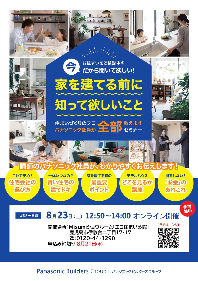 【参加無料】8/23開催オンラインセミナー「家を建てる前に知って欲しいこと」