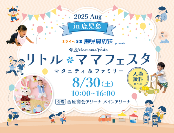 2025年8月30日(土) 西原商会アリーナ(メインアリーナ)にて開催される「リトルママフェスタ鹿児島」 に出展いたします。